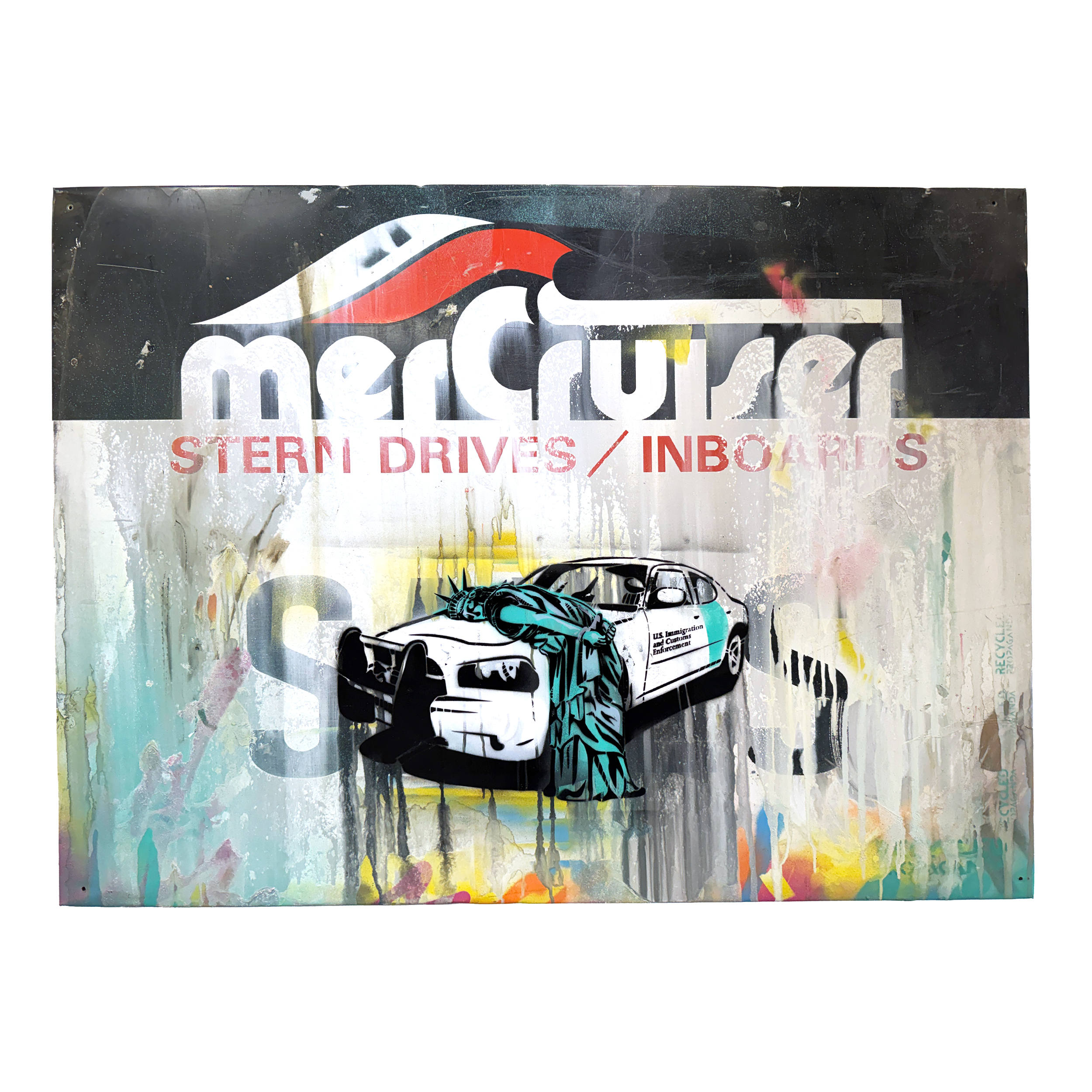 Mixed media on antique mechanics sign