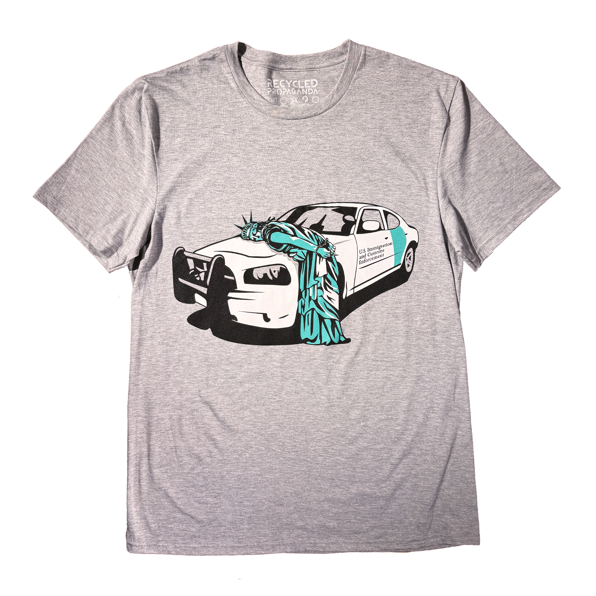 Heather grey tee with three color “Chain Migration” screen print on front