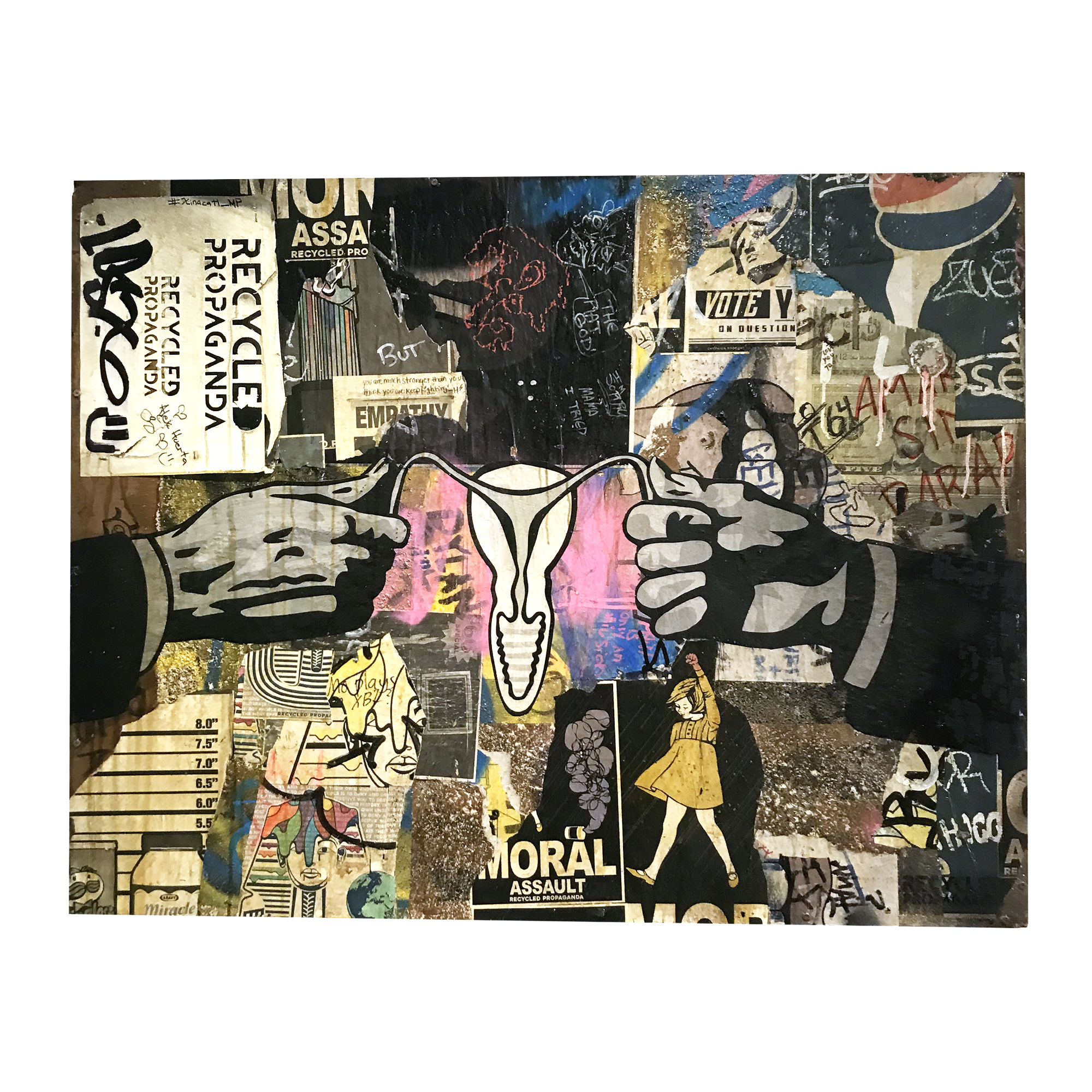 Mixed media and assemblage on framed reclaimed board